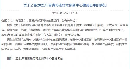 2022/01/052021年12月6日,青島市科技局公示了2021年度技術(shù)創(chuàng)新中心建設(shè)名單,青島正亞機械科技有限公司在眾多參選企業(yè)中脫穎而出,成功入選。