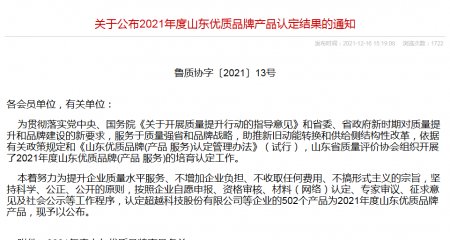 2022/01/05青島正亞機械科技有限公司的“CA ZHENGYA”方便面生產(chǎn)線獲評“2021年度山東優(yōu)質(zhì)品牌”。