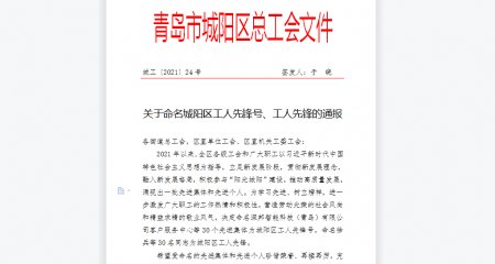 2022/03/04“城陽區(qū)工人先鋒號”由城陽區(qū)總工會授予,是以創(chuàng)一流工作、一流服務(wù)、一流業(yè)績、一流團隊為核心的榮譽稱號。青島正亞機械科技有限公司于2021年12月22日正式獲得此榮譽稱號。